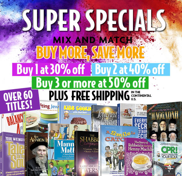 Here at ArtScroll, we want to ensure that our readers will enjoy books that will engage, inspire, and, yes, also keep us (and the kids!) entertained. And in today’s uncertain economic environment, we also want to ensure that our readers can get such books at a very affordable price. That is why ArtScroll is offering readers our “Super Specials” — great books at incredible discounts.