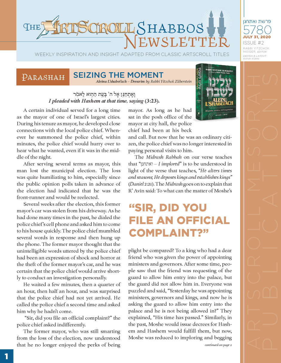 Click Here to view and download The ArtScroll Shabbos Newsletter – Va’eschanan.