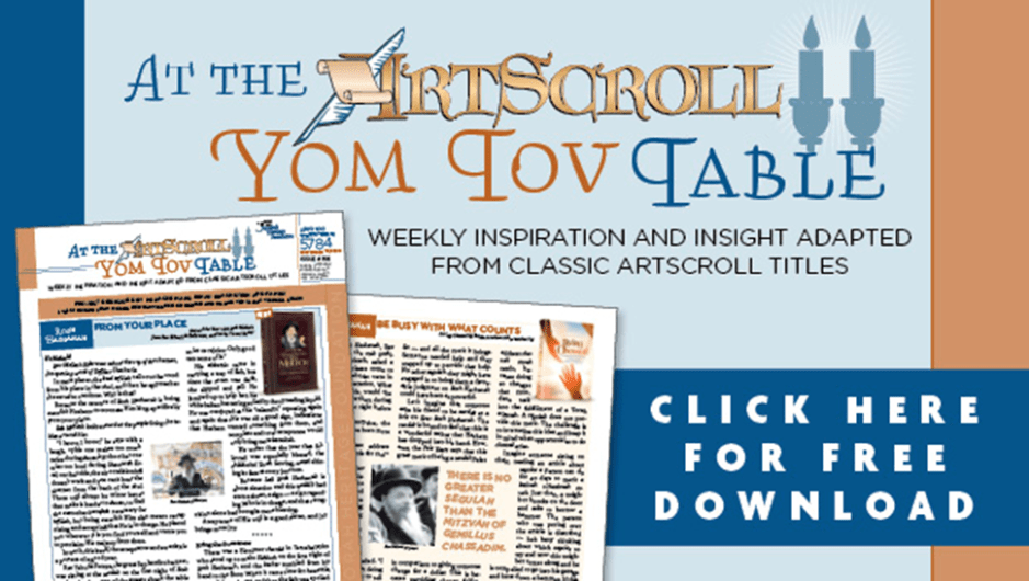 Below please find the latest edition of At The ArtScroll Yom Tov Table, containing inspiration and insight from classic ArtScroll titles.