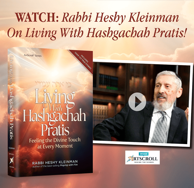 We call it “hashgachah pratis” — the understanding that Hashem is continuously in our lives, and not just in historic events and obvious miracles. Hashgachah pratis tells us that Hashem is with us in traffic jams, in hospital wards, and while we’re waiting for a delayed plane to take off. He is with us even in our times of suffering. Everything, but everything, reflects His Will and His goodness. And the more we are aware of the hashgachah pratis around us – the more we are able to see it clearly! In his new book, Living With Hashgachah Pratis, and in this Inside ArtScroll interview, Rabbi Heshy Kleinman, author of the classic Praying With Fire series, shows us how to become aware of hashgachah pratis in our world, and how such a consciousness will ignite our emunah, enhance our gratitude, increase our merits, and lead us to a happier, more secure and meaningful life.