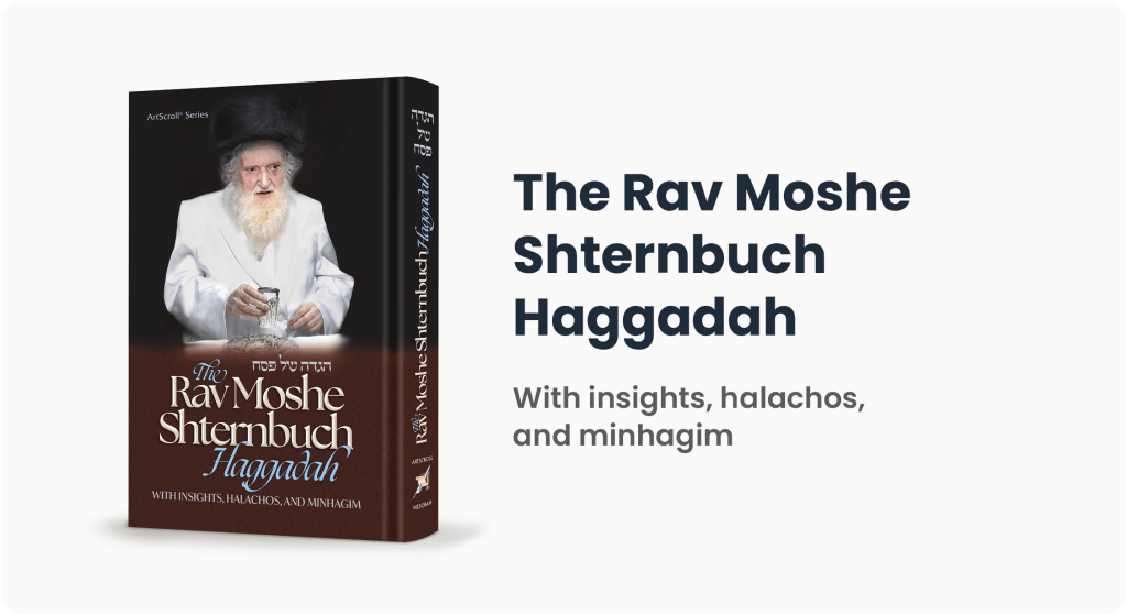 The Rav Moshe Sternbuch Haggadah: In these pages, we will savor Rav Sternbuch’s brilliant and dazzling insights on Yetzias Mitzrayim, his minhagim and halachic rulings, and his inspired advice for living elevated Torah lives all year round. At the same time, we clearly hear the voice of previous generations of Torah giants from whom Rav Sternbuch learned – giants such as Rav Elchanan Wasserman, the Brisker Rov, Rav Dessler, the Chazon Ish, Rav Aharon of Belz, and the Tchebiner Rov, as he shares their Torah thoughts and personal stories about them. Here, too, are stories of Rav Sternbuch’s encounters during his close to eight decades of Torah leadership. BUY NOW!