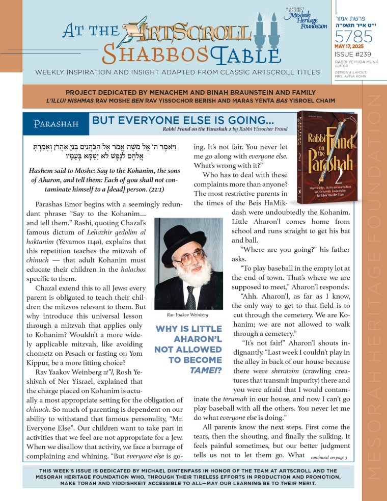 Below please find the latest edition of At The ArtScroll Shabbos Table, containing inspiration and insight from classic ArtScroll titles.
