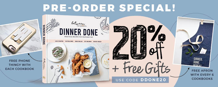 A candid interview with the creators of Between Carpoolsand the latest cookbook sensation, Dinner Done!
