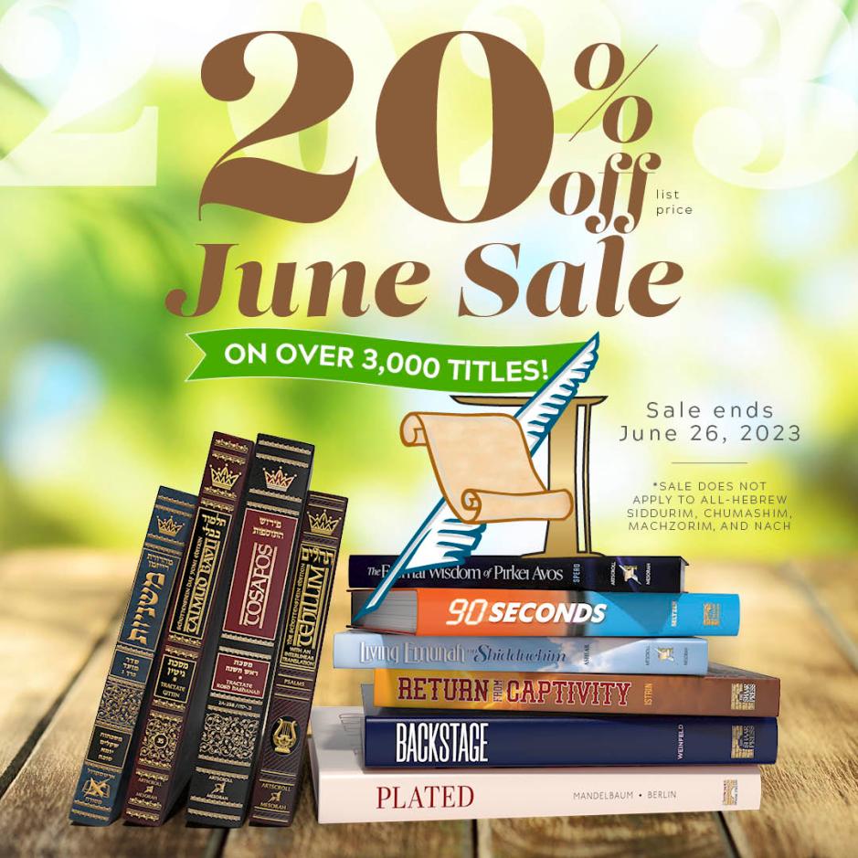 The June Sale. ArtScroll quality. Three thousand books. Great prices! Go!