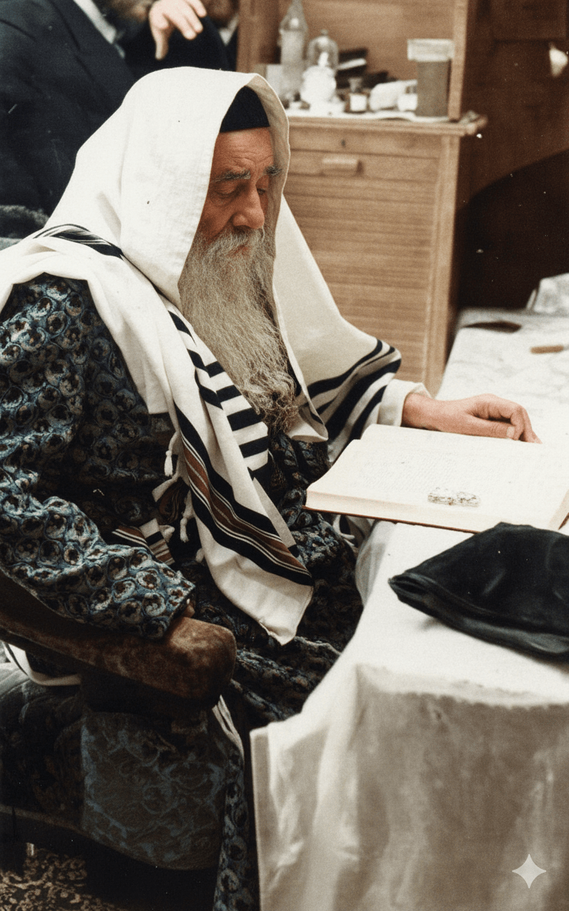 At the front of the beis midrash, davening at the amud, fully in white, was the Mashgiach. He looked like a malach, and his voice thundered in heartfelt tefillah. Rav Mattisyahu, who served as chazzan for decades in Gateshead, davened with tremendous passion and heart, collectively sweeping up the entire yeshivah and kehillah in his enthusiasm, arousing the assembled to ever higher levels of tefillah and avodah.